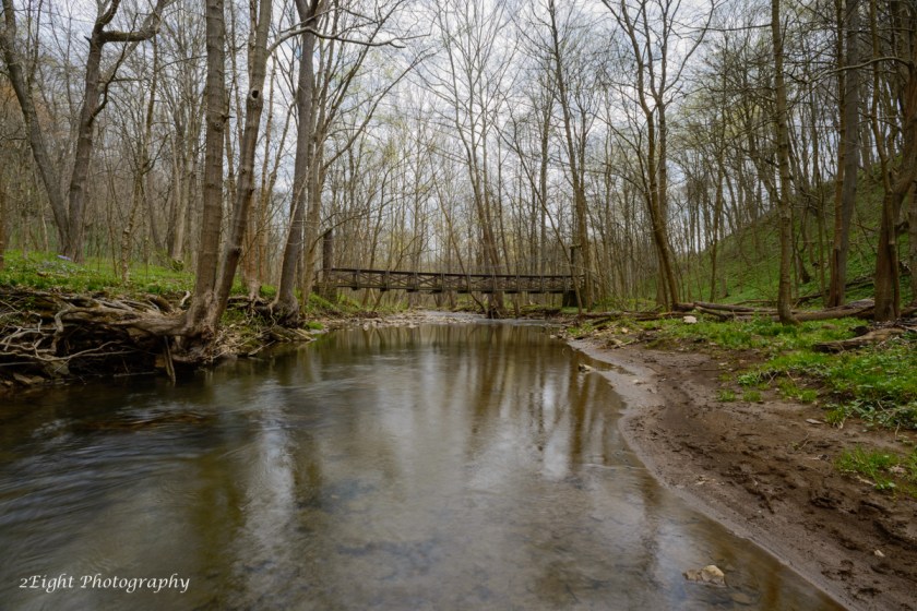 Previous Image Next Image Stream The stream makes it’s way under a suspension bridge in Cedar Creek Park.