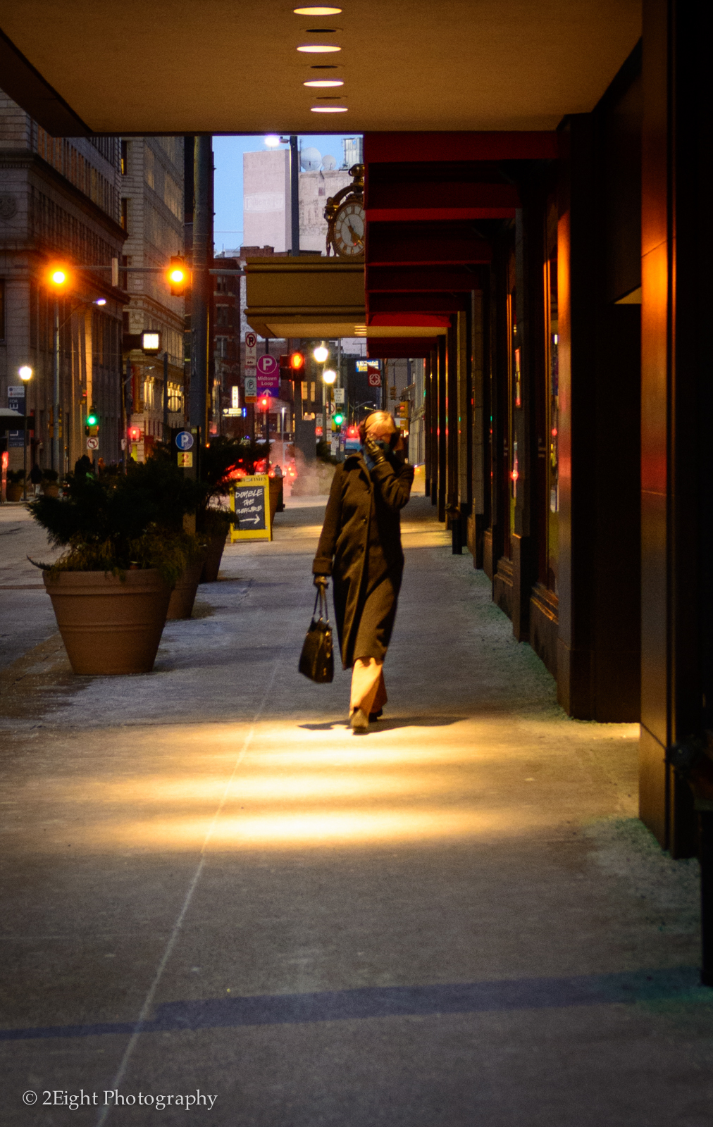I had planned to get out to a local waterfall and see if had frozen completely over but that didn’t happen so today you get another cold picture from the city of Pittsburgh. This photo was taken this evening a little after 5pm and the temp was sharply sitting at 3° with a wind chill of around -30°. Nice day for a walk in the city. This lady didn’t seem to be enjoying her walk.