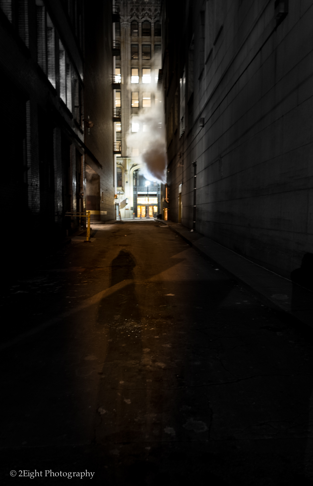 I took this photo on Monday afternoon while I was walking around town after work. If you are a follower of my blog you know that I spend a lot of time in the city of Pittsburgh walking and photographing just about anything, and Monday was no exception. I walked through a part of the city I normally avoid as there is a place called Pittsburgh Popcorn and every time I get near the place I end up buying popcorn, but that’s a completely different story. So anyhow, as I was walking and eating my caramel and chocolate covered popcorn, I turned up a small one way street and saw this sign on the wall. After closer inspection I really don’t know what the reasoning is behind the sign. But I took a couple of shots and moved on. After looking at this photo I really fell in love with the simplicity of the photo and the composition. I have both a color and B&W version of the photo but feel that the B&W really makes the photo “jump”. Isn’t it amazing how sometimes the simplest of composition and subject matter can make for an interesting photo?